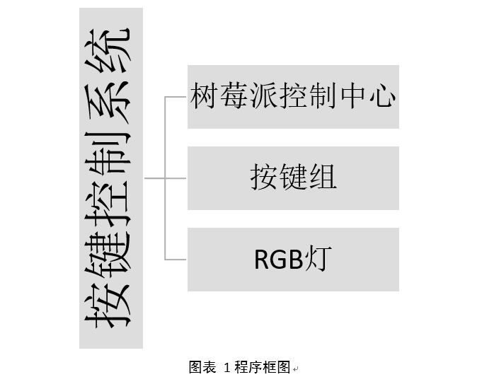 系统主要由树莓派、3个轻触开关和3个RGB灯组成,树莓派是整个系统的核心,通过检测按键的开关状态控制相应灯的亮灭。