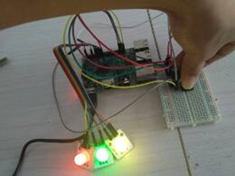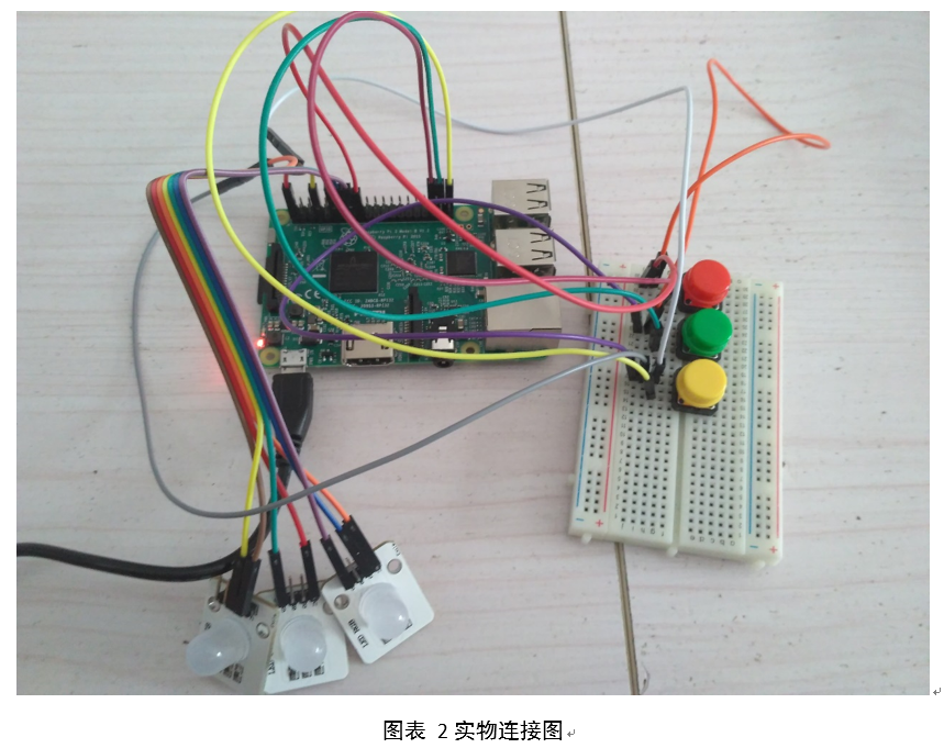 1.1、运用树莓派设计一个简单的按键控制LED灯点亮系统。通过树莓派控制器读取外部数字信号,使用三个按键分别控制三种颜色的 LED灯,当有按键按下时对应的LED灯会点亮,按键松开后对应的LED灯则熄灭。