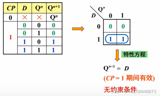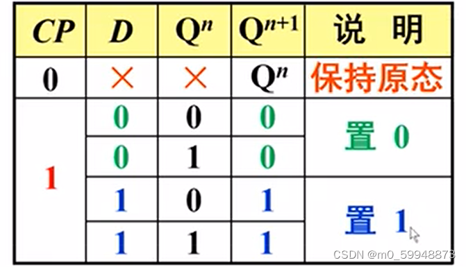 0状态保持,D=0; 1状态保持,D=1;