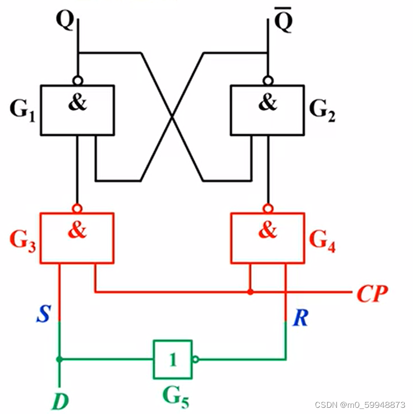 当CP(时钟)为0时,触发器是不受D端输入信号控制的。保持原状态不变(对于这里不理解的,可以看篇同步SR电路数字电路之RS触发器(与非门)_m0_59948873的博客-CSDN博客)