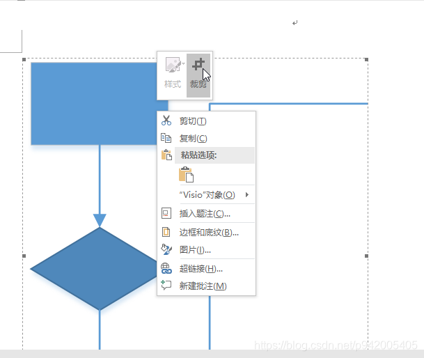 1. 先把你的visio文件插入到word文档,右键文档中的visio图,点击裁剪