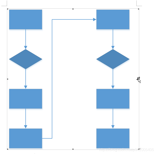 2. 点击裁剪之后出现裁剪图标,将裁剪图标放在visio周边的的8个小黑方框上拖动,如上图下侧和右侧未显示出来就拖动右侧中间小黑框和下侧小黑框直到显示完全,如果已经拖到word边缘,可以先退出裁剪,将visio整体缩小再裁剪如下图: