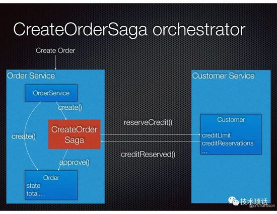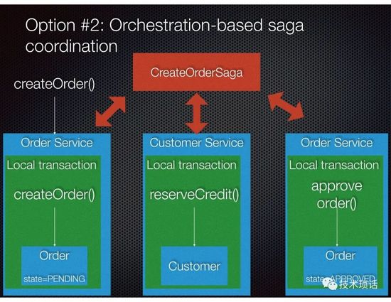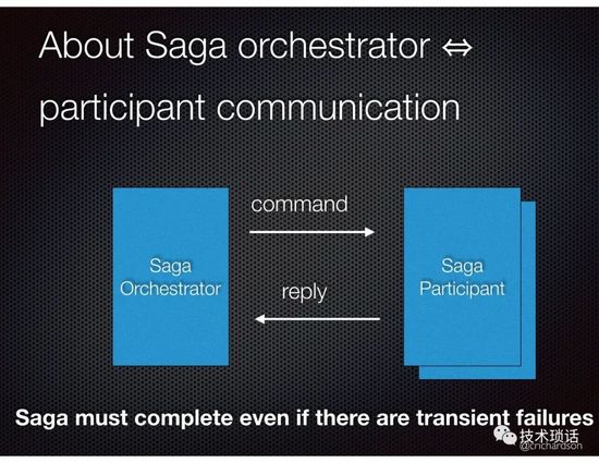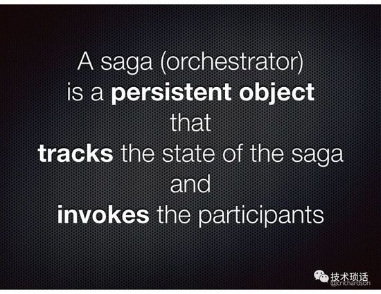 saga( orchestrator ) 是一个持久性对象,跟踪 saga 的状态,以及调用参与者