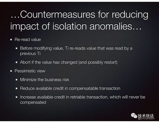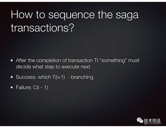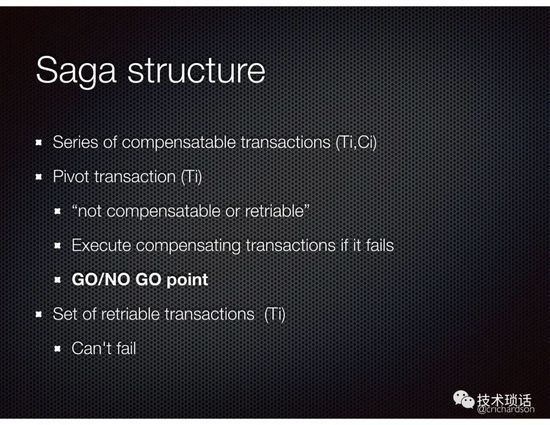 forward recovery,向前恢复,重试失败的事务,假设每个子事务最终都会成功。适用于必须要成功的场景,执行顺序是类似于这样的:T 1 , T 2 , ..., T j (失败), T j (重试),..., T n ,其中j是发生错误的sub-transaction。该情况下不需要C i 。