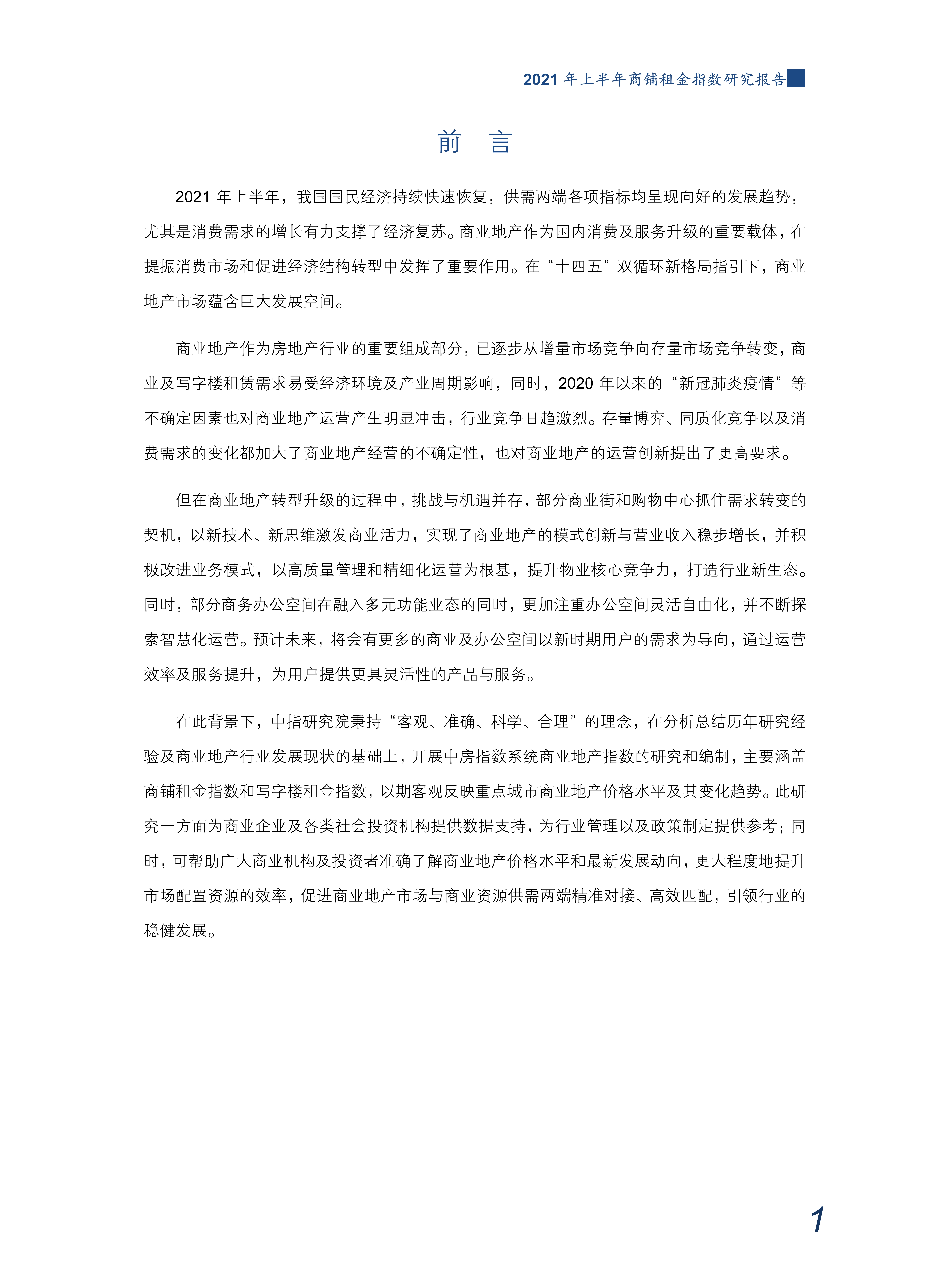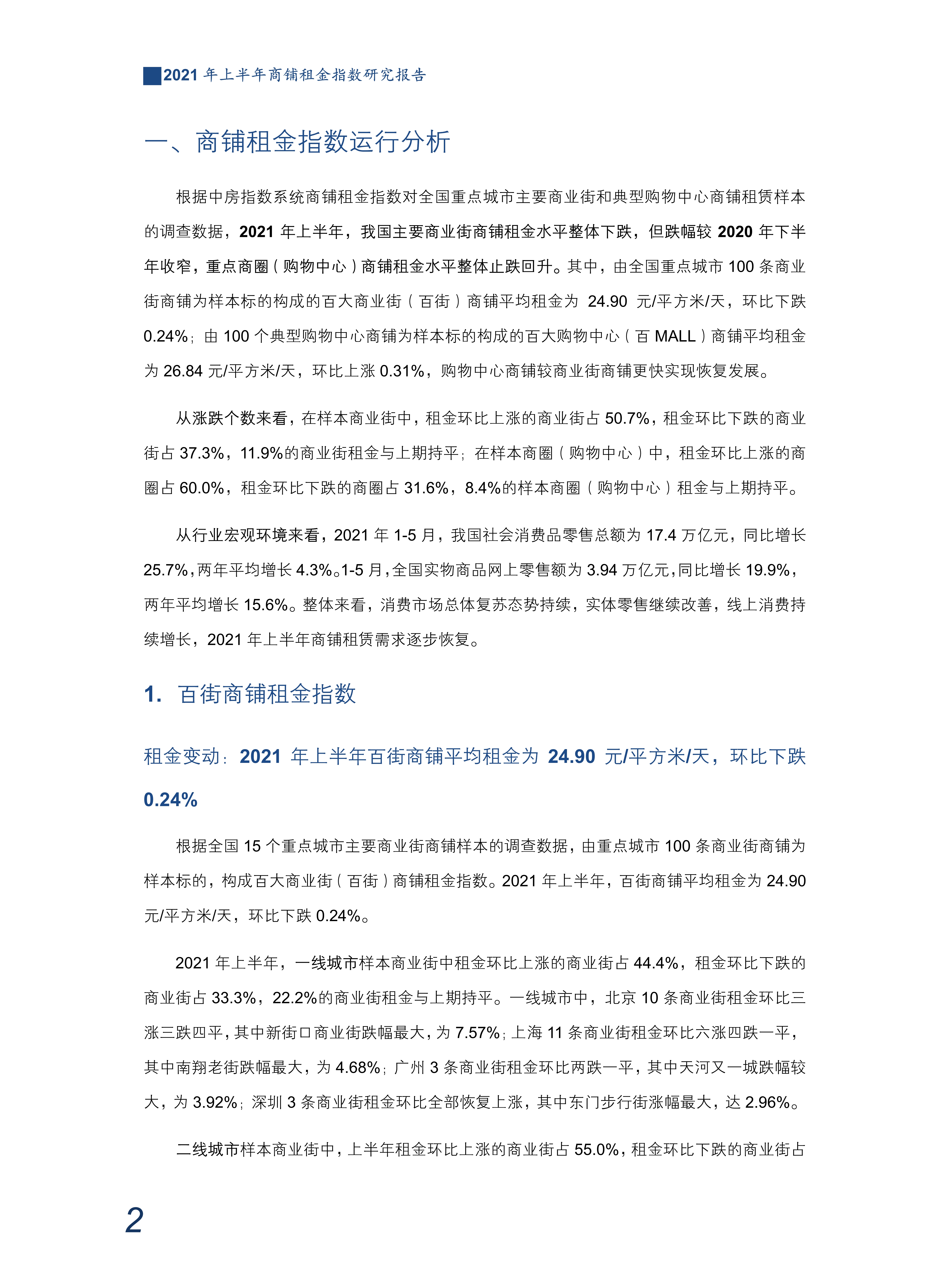 【行研报告】2021年上半年商铺租金指数研究报告—附下载链接