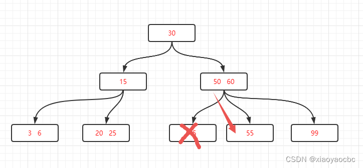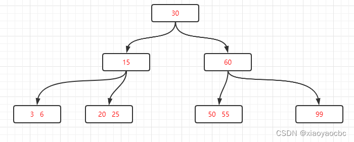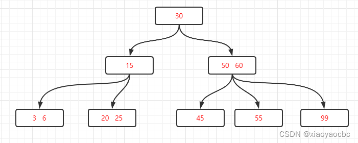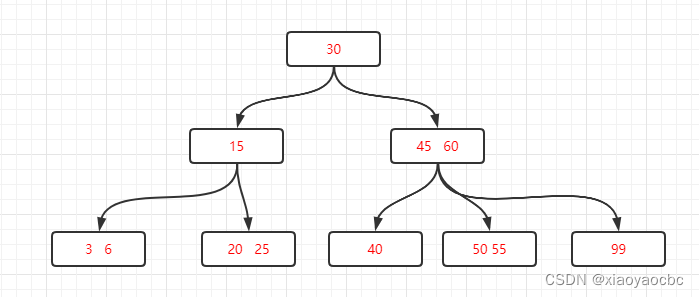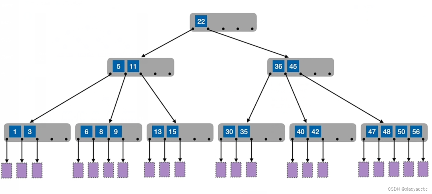 (3)除根节点外的所有非叶节点至少有⌈m/2⌉棵子树,即至少含有⌈m/2⌉-1个关键字。(⌈⌉表示向上取整,例如⌈1.001⌉ = 2)