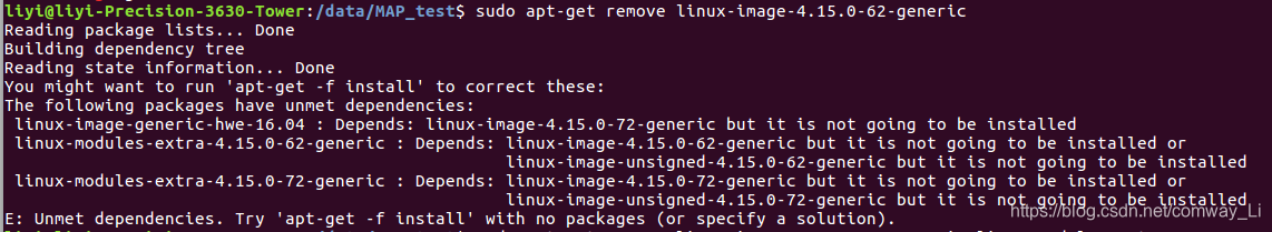 这个错误说明,你要卸载linux-image-4.15.0-62-generic,必须先卸载他所依赖的文件,如linux-image-generic-hwe-16.04、linux-modules-extra-4.15.0-62-generic;
