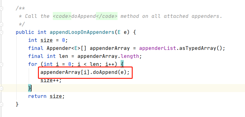 打印日志到文件中使用的 RollingFileAppender ,LOG.info("info");跟踪源码可以发现最后会调用当前Logger引用的Appender.doAppend 方法: