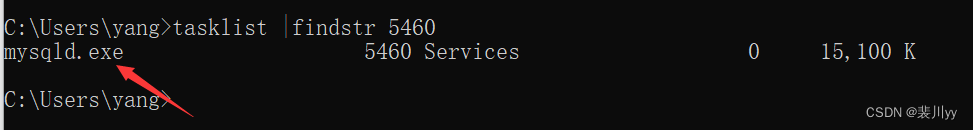 (3)输入命令:tasklist |findstr 进程号,查看进程号对应的进程名
