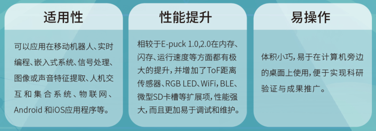 E-puck2.0是高端桌面型嵌入式机器人,可以在有限的空间内融入大量的智能机器人进行多智能体自主协同实验,凭着其在任务适用性、经济性、稳定性、可扩展性、软件开放性强等方面的优越性,可在已知环境下的任务动态分配和再分配研究、任务预测与任务分解研究以及异构大规模系统和复杂任务分配研究等方面发挥巨大功能和优势。