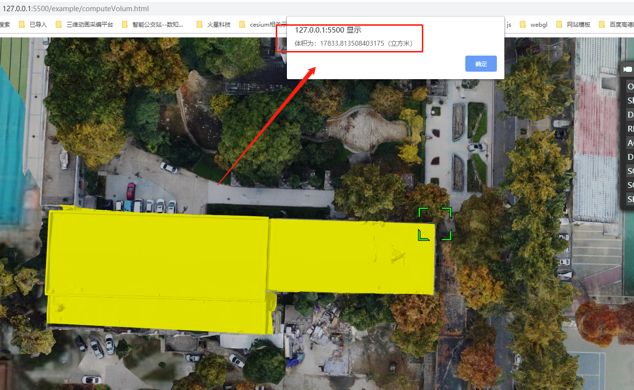 先看下效果:目前是在模型上绘制完面之后,alert了一下体积。