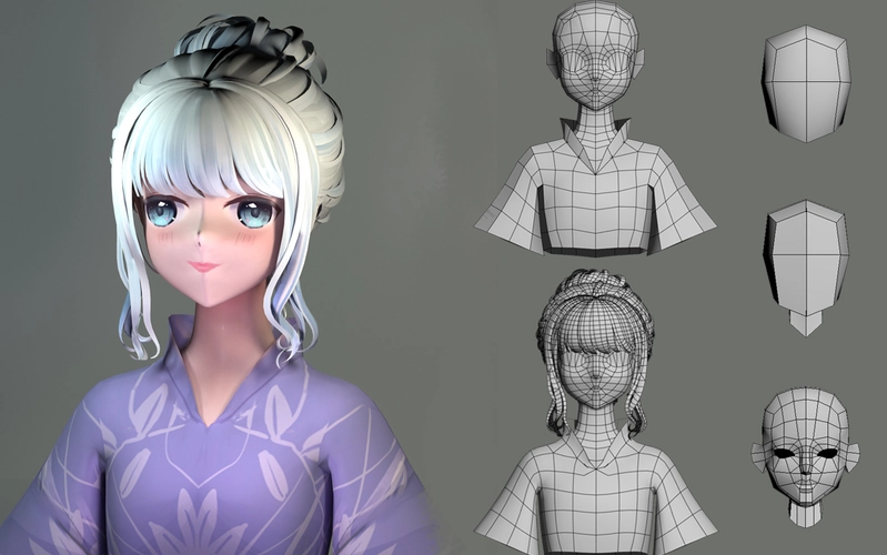 1. 根据原画设定制作中模(3D MAX/MAYA)