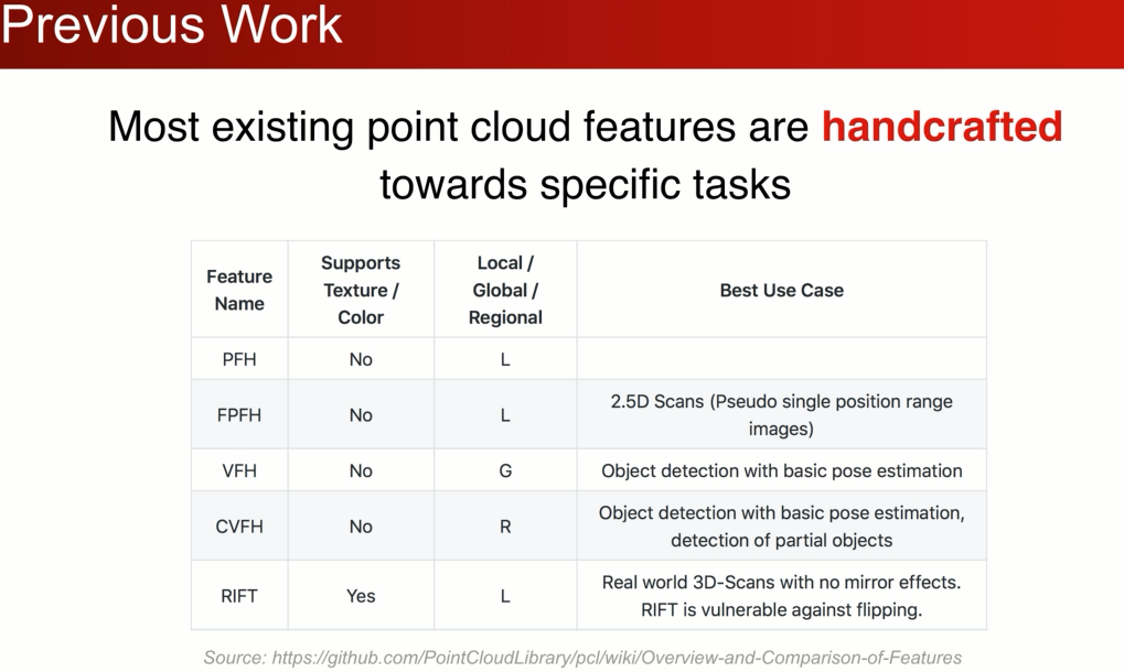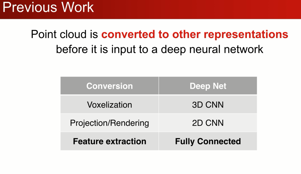 最近才有一些方法研究直接在点云上进行特征学习,之前的大部分工作都是集中在手工设计点云数据的: