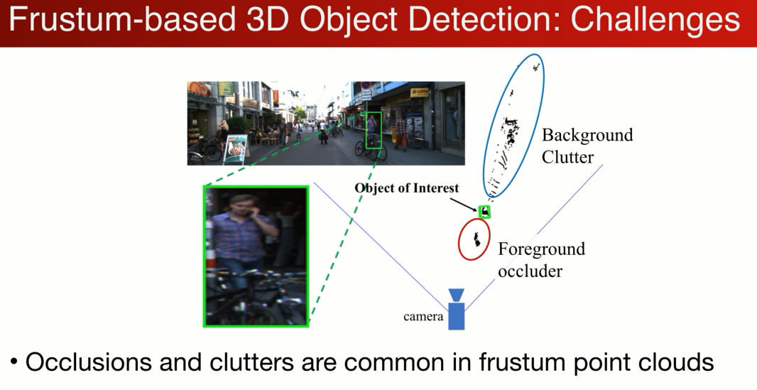 基于视锥的3D物体检测,有两个挑战: