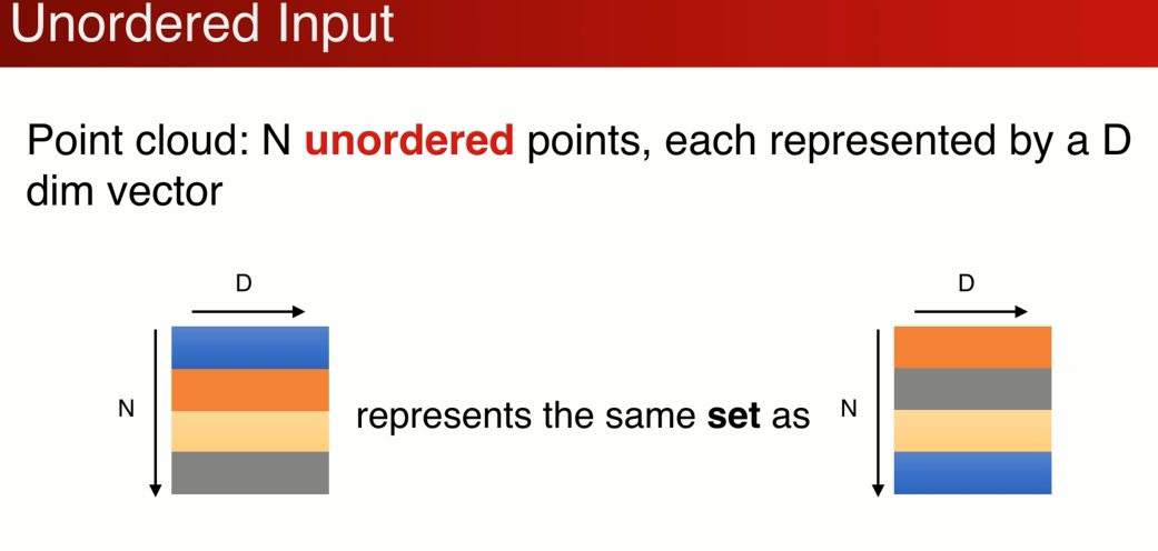 点集是无序的,可以做变化,背后的代表的是同一套点集,置换不变性。 模型需要对N!网络需要做到置换的不变性。