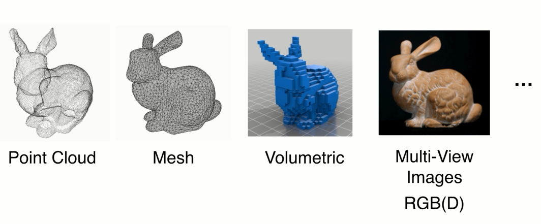 三维数据本身有一定的复杂性,2D图像可以轻易的表示成矩阵,3D表达形式由应用驱动的: