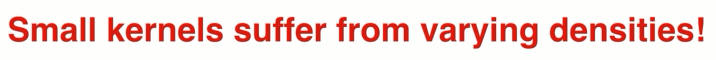 在卷积神经网络中大量应用小的kernal(VGG 3*3*3),在pointcloud中是否一样呢?不一定。