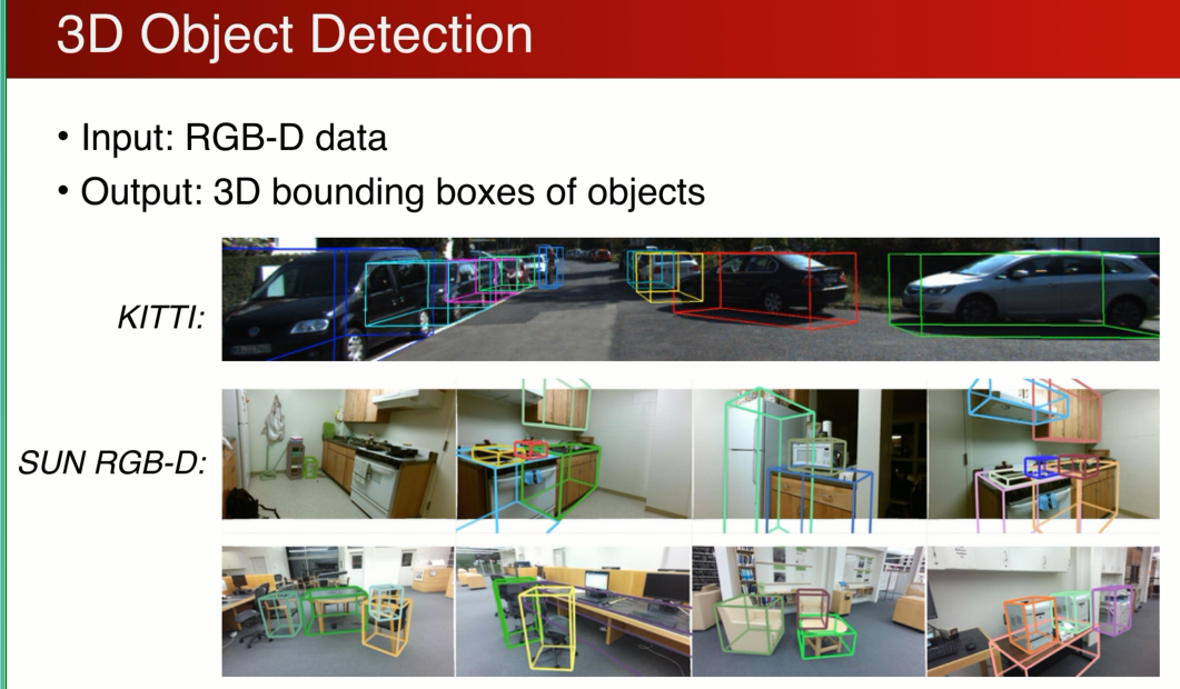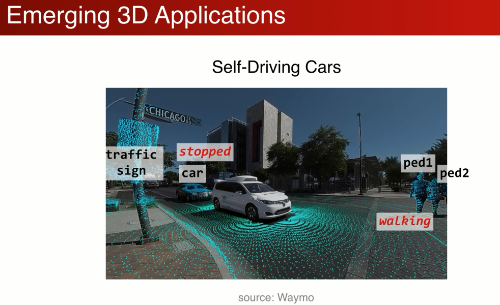 进来很多3D的应用在兴起,3D传感器在进步,随着虚拟网络的发展转到物理实际中的应用,比如(ADAS,AR,MR)自动驾驶中需要理解 汽车行人交通标识,同时也需要理解三维物体的状态静至,移动。