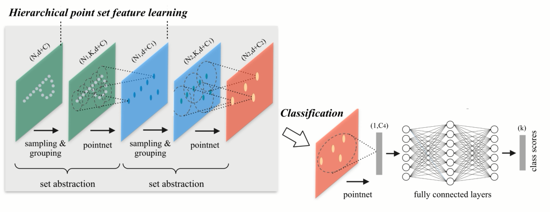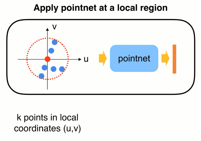 点集的简化: layer:选择小区域,提取小区域提取局部坐标系,应用point net联合而成。