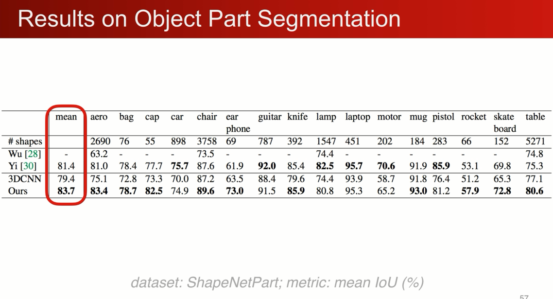 部件分割和完整的分割。shapenetpart
