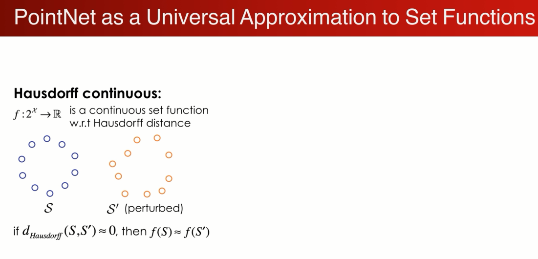 pointnet 可以任意的逼近在集合上的对称函数,只要是对称函数是在hausdorff空间是连续的,那么就可以通过任意的增加神经网络的宽度深度,来逼近这个函数