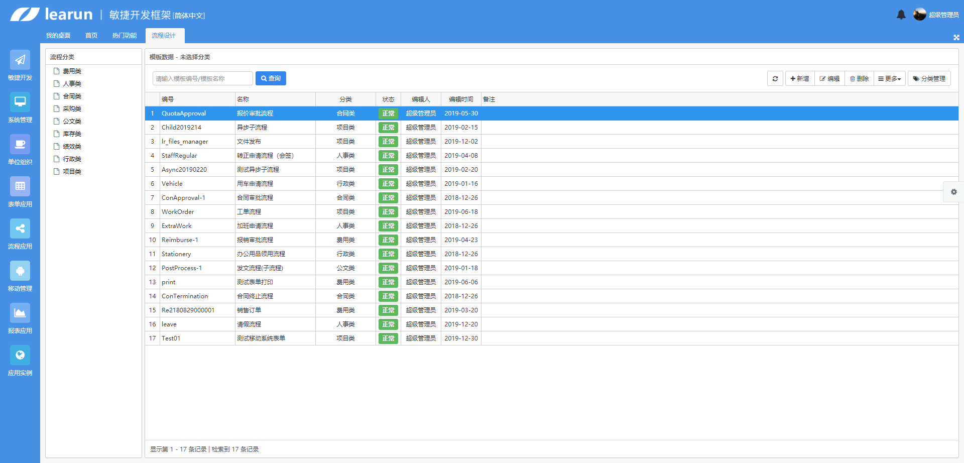 工作流在企业管理软件的开发中处于核心地位,几乎所有常用功能都需要工作流。工作流辅以权限和表单,才能构成比较完整的管理模式。