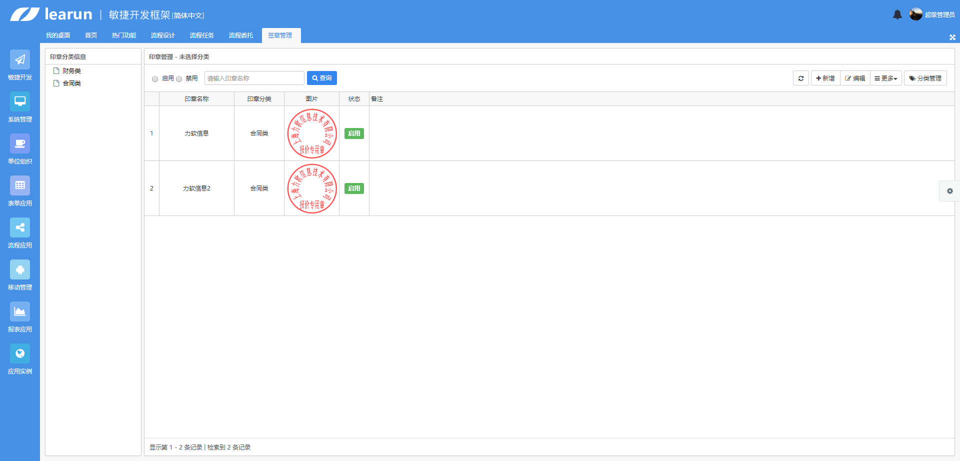 所展示前端均使用vue,截图部分分别是流程设计、流程任务、流程委托、流程监控和签章,有一个请假实例要权限和表单配合,欢迎指正。