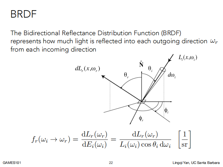 【BRDF这一块可以去看清华胡老师的视频,讲的更清楚】