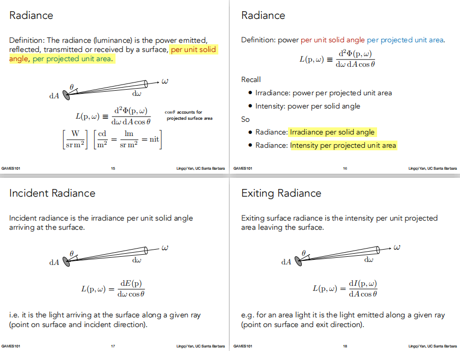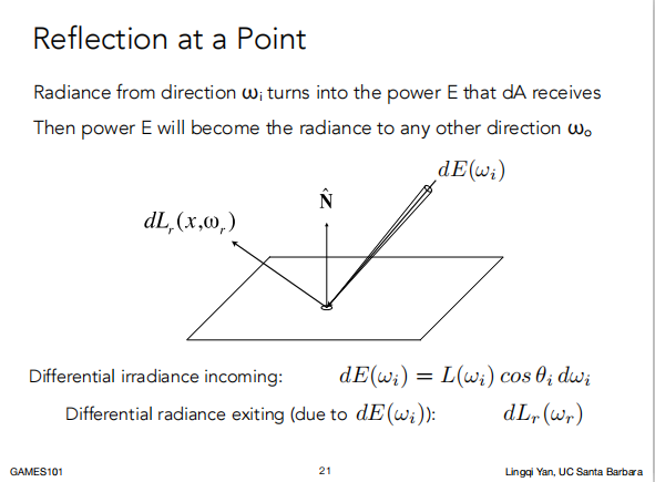 【!!!!看不懂的可以理解为反射便是一个点从四面八方吸收到了Power(irradiance),往某个特定的方向反射(radiance)】