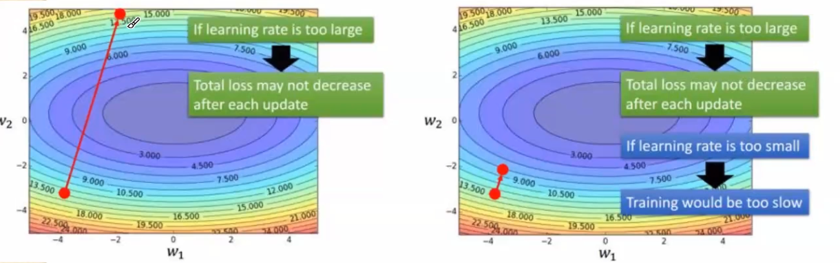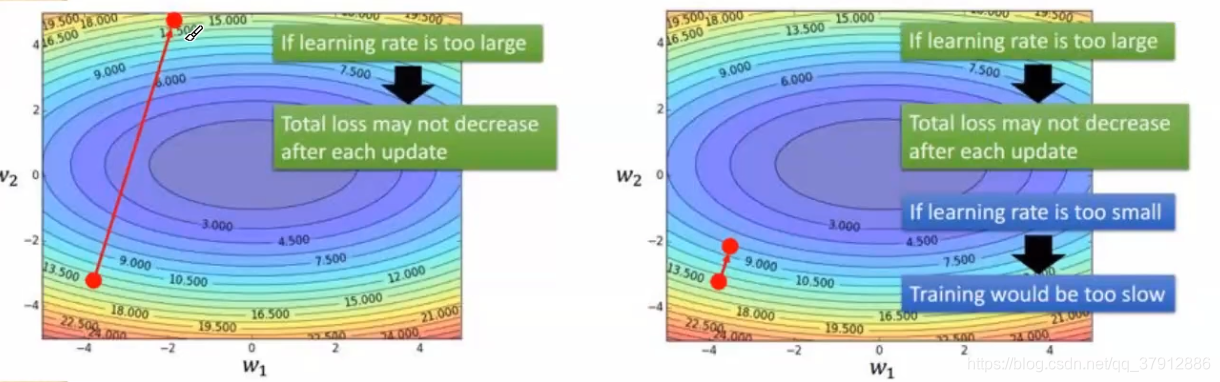 learning rate不易确定、如果选择的太小收敛速度会很慢;如果太大,loss function就会在极小值处不停地震荡甚至偏离。