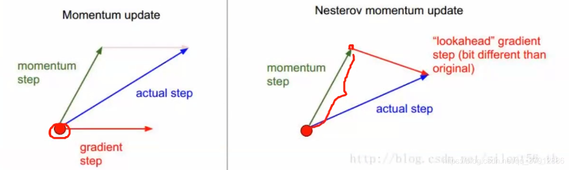 对Momentum的一种改进:先对参数进行估计,然后使用估计后的参数来计算误差。