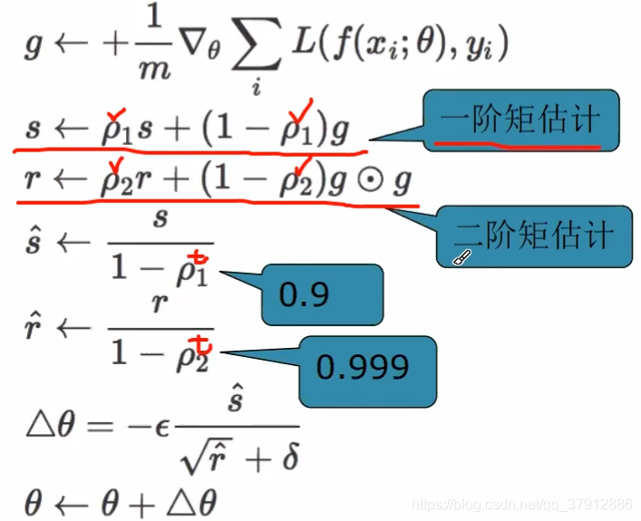 它利用梯度的一阶矩估计和二阶矩估计动态调整每个参数的学习率。ρ1,ρ2的参数分别为0.9和0.999