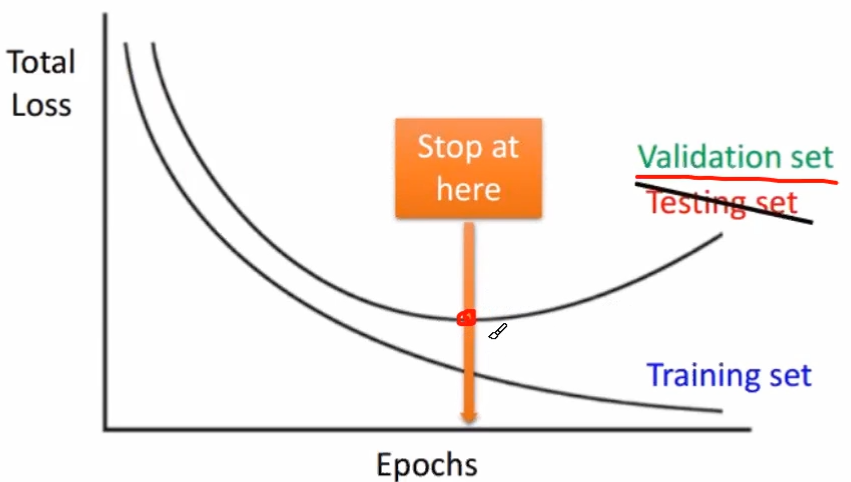 当目标函数在“验证集”上不再减小时,训练就应该停止了。