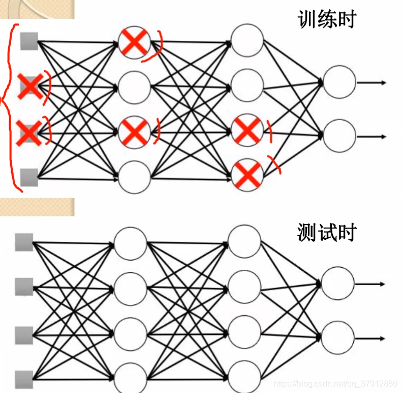 每次新输入一个mini-batch时候,按一定的比例删减部分神经元(一般保留下来的神经元的个数为0.7-0.5),然后进行训练。