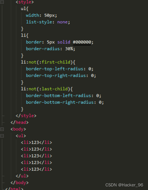 | 结构伪类选择器可以根据元素在文档中的位置,来动态的选择元素,从而减少了HTML文档对id或者类的依赖,有助于保持代码干净整洁。 (1)E:first-child{样式声明} :选择父元素的第一个子元素E,给它设置样式 (2)E:last-child{样式声明} :选择父元素的最后一个子元素E,给它设置样式 (3)E:nth-child(n){样式声明} :选择父元素的第n个子元素E,,给它设置样式 |