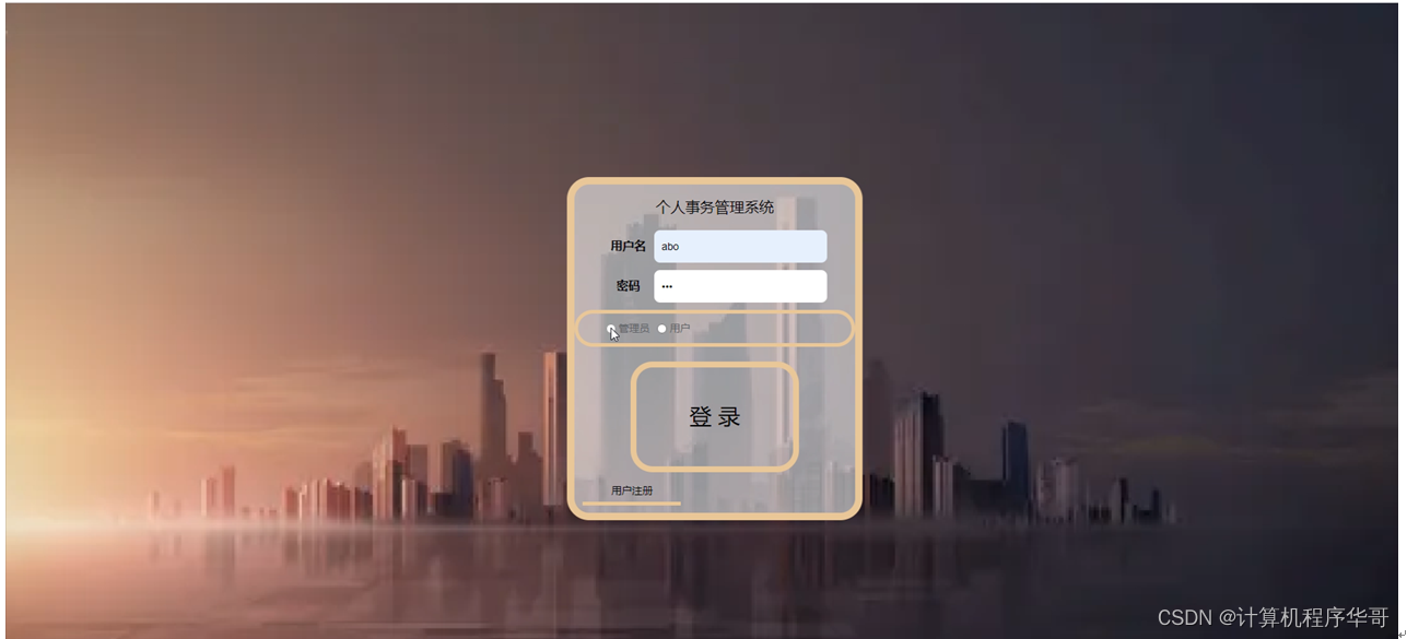 考虑到实际生活中个人事务管理系统方面的需要以及对该平台认真的分析,将系统权限按管理员和用户这两类涉及用户划分。
