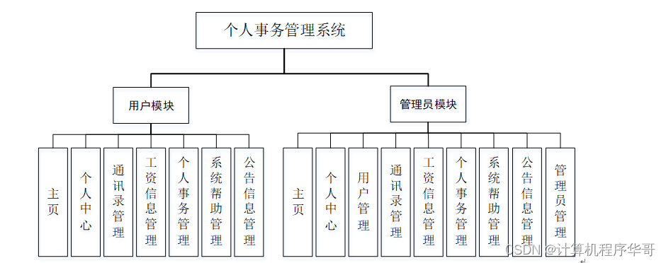 图 4-1 个人事务总体功能模块图