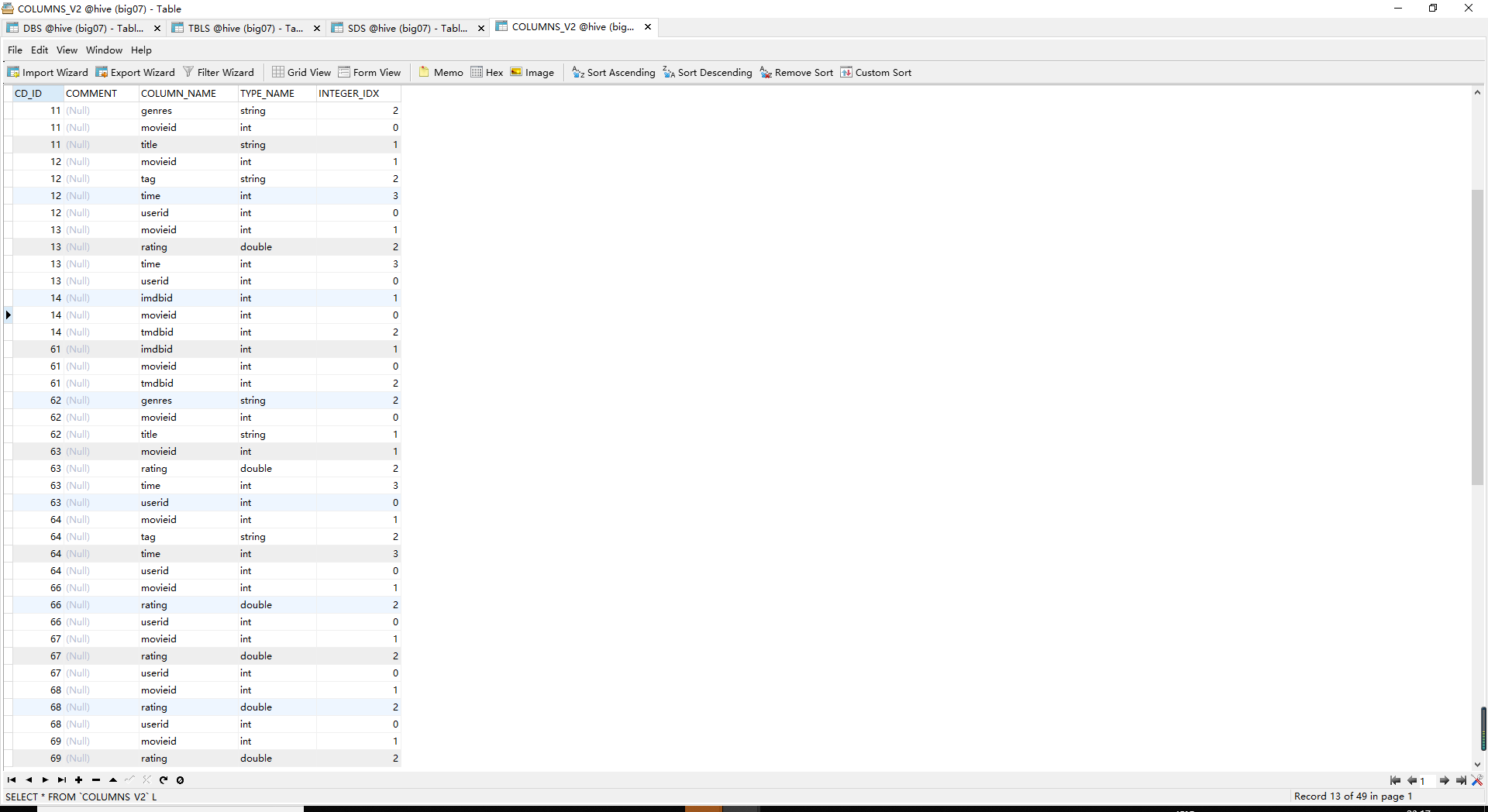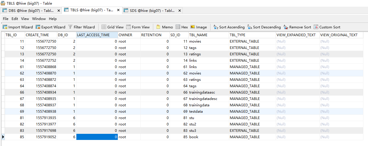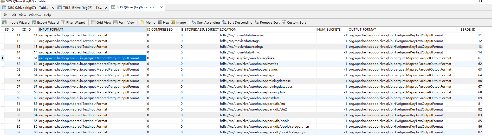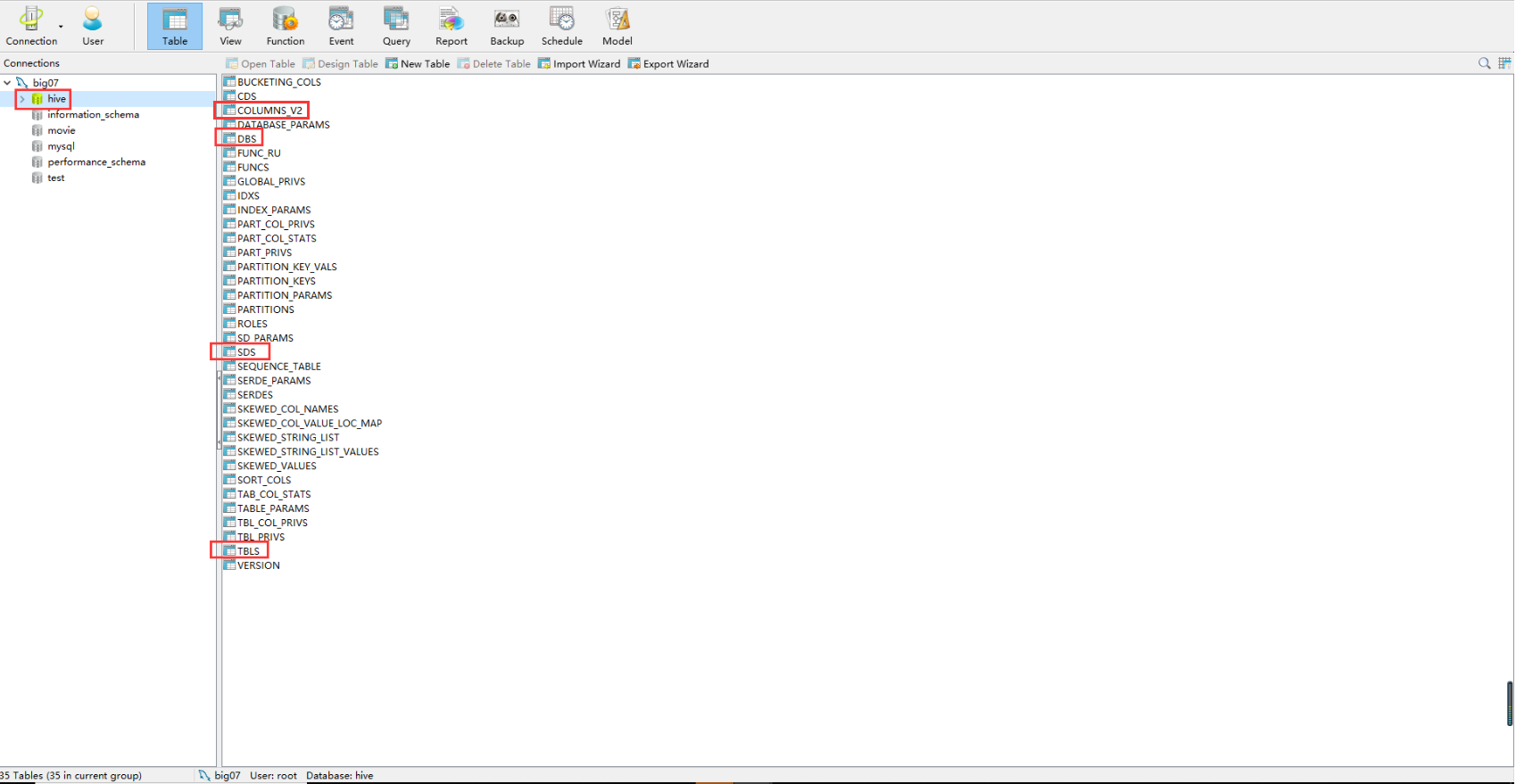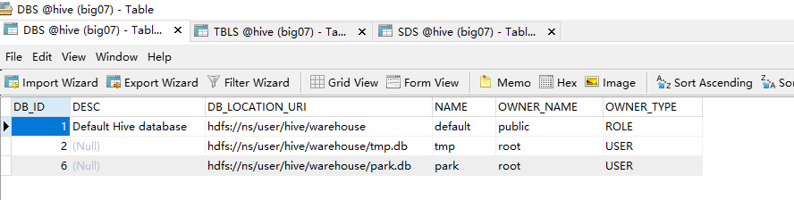 如何理解元数据呢?可以理解成真实数据的路径,如上图所示如果找到了/user/hive/warehouse/park.db/stu也就找到了真实数据。而mysql就是来管理这些路径的,如下图所示当hive中配置了mysql之后mysql中会自动创建名为hive的数据库和如图的其他表,表中存放了找到这些数据的路径,还有数据组织方式。