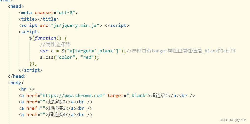 | 属性名称选择器 | $("A[属性名]") | 包含指定属性的选择器 |