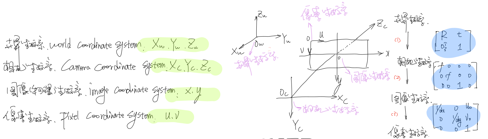 . 在第一次检测到新特征时,视觉相机在世界坐标系下的坐标为 ( x i , y i , z i ) T (x_i, y_i, z_i)^T (xi,yi,zi)T,目标点 P i P_i Pi在图像坐标系下的坐标为 ( u , v , 1 ) T (u,v, 1)^T (u,v,1)T,由小孔成像模型得,其在世界坐标系下的表达式为: p w = ( p x w , p y w , p z w ) T = R W C K ( u , v , 1 ) T p^w=({p_x}^w,{p_y}^w,{p_z}^w)^T=R^{WC} K(u, v, 1)^T pw=(pxw,pyw,pzw)T=RWCK(u,v,1)T 其中, R W C R^{WC} RWC表示从视觉相机坐标系到世界坐标系的旋转矩阵,K表示相机内参。所以,目标点 P i P_i Pi在世界坐标系下的方位角和高低角分别为: