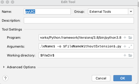 Arguments:-m PyQt5.uic.pyuic $FileName$ -o $FileNameWithoutExtension$.py