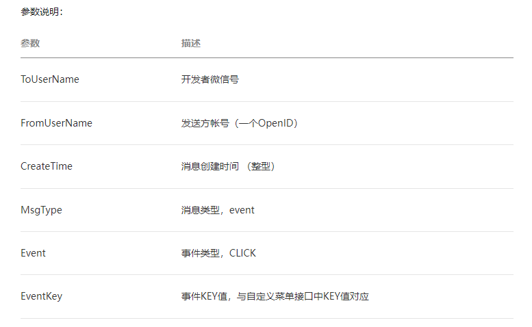 用户点击自定义菜单后,微信会把点击事件推送给开发者,请注意,点击菜单弹出子菜单,不会产生上报。