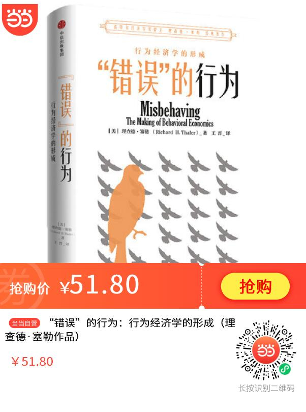 在书中,查德·塞勒将这个看似复杂难懂的经济学行为化解为有趣的故事,用诙谐幽默的文字教我们如何判断这些“错误”的行为。