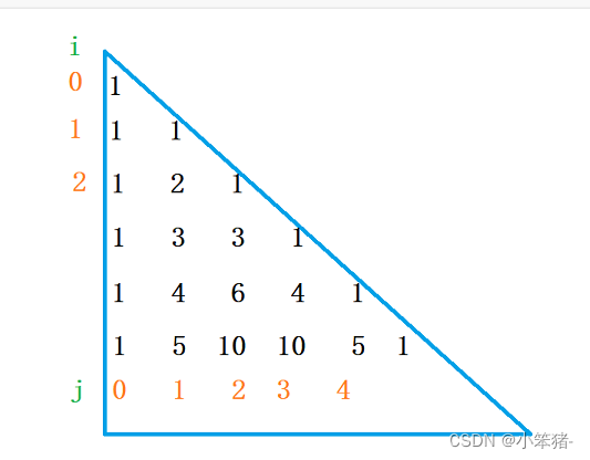 中间的数字:[i][j]= [i-1][j-1]+[i-1][j]