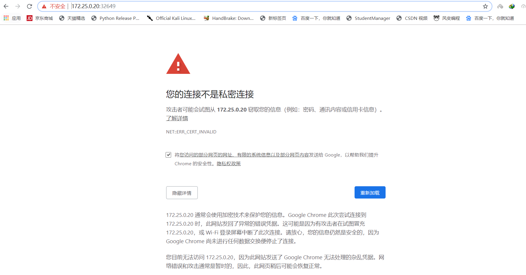 7.用浏览器查看,发现需要https请求,Chrom(谷歌浏览器用不了),Firefox(用火狐浏览器就行)
