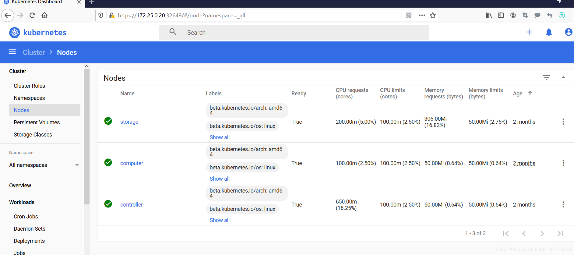 kubernetes-dashboard NodePort 10.96.145.225 443:32649/TCP 22m k8s-app=kubernetes-dashboard