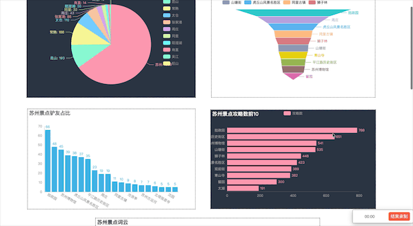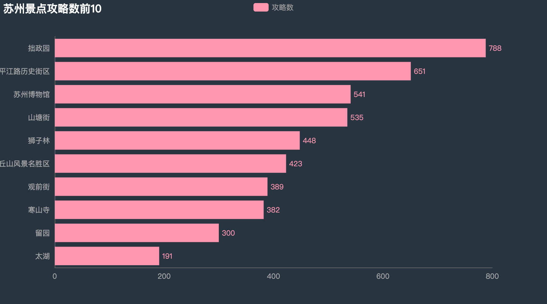 我们以苏州景点的数据分析作为展示。本文亮点是所有的图形使用的是可视化库:pyecharts,这是一个国产的可视化库