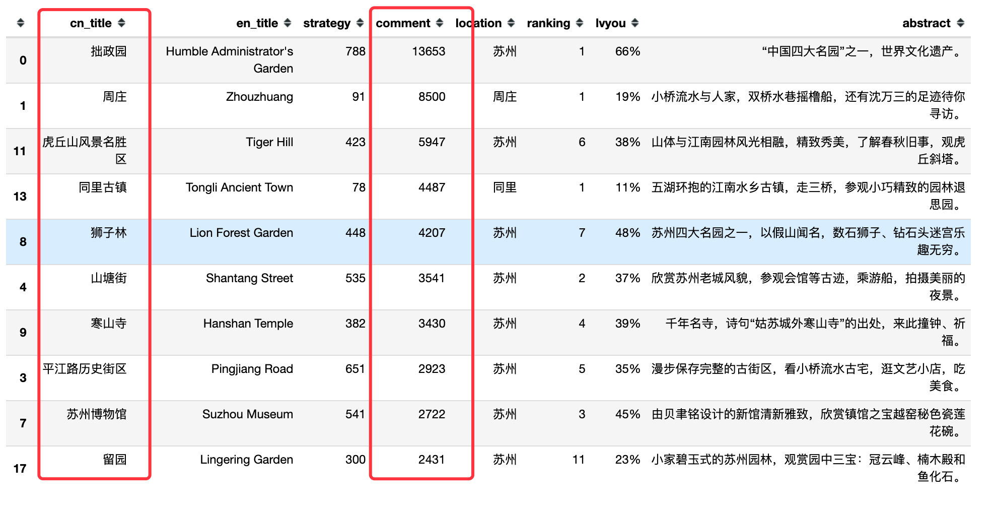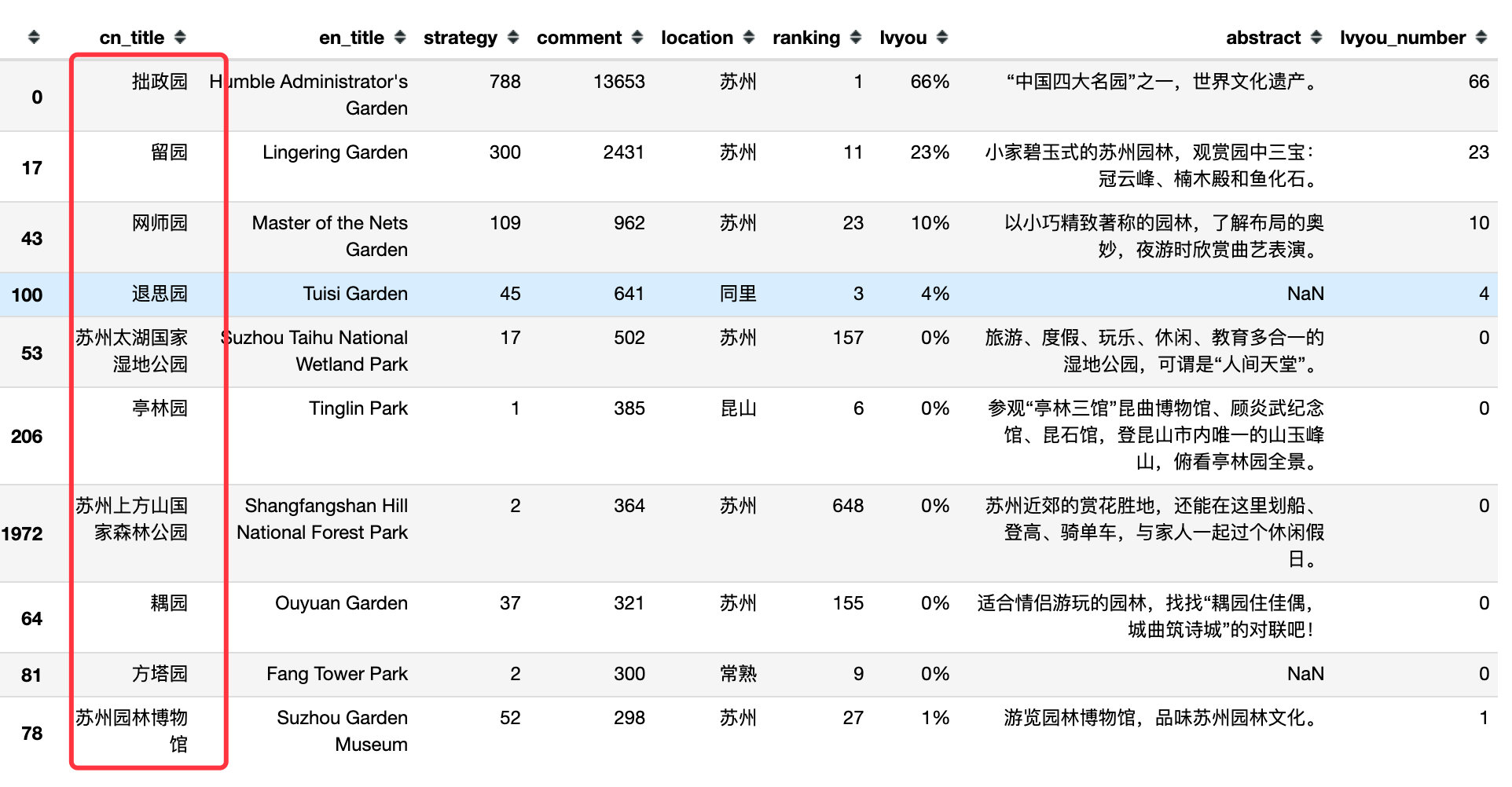 苏州是一个园林城市,我们从数据中看到:本次获取到的数据里面苏州有457个和“园”相关的景点。比较出名的还是: