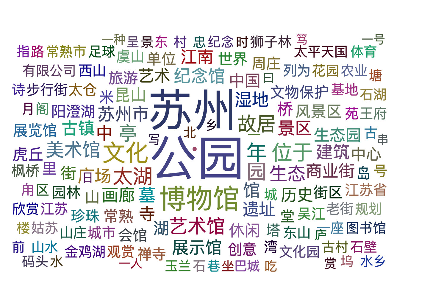 我们获取到的数据景点的中文名和简介进行了词云图展示: