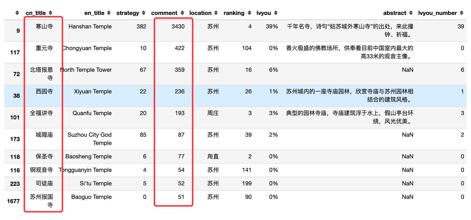 省略相关的数据导入和数据探索部分,重点是看看数据分析的结果。苏州景点数据有2000*8